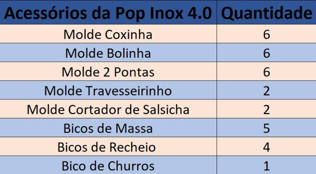 Atenção!Os valores apresentados nos vídeos de demonstração e nas tabelas são apenas referências. Ponto diferentes de massa e recheio necessitarão de ajustes na programação do painel da modeladora.
